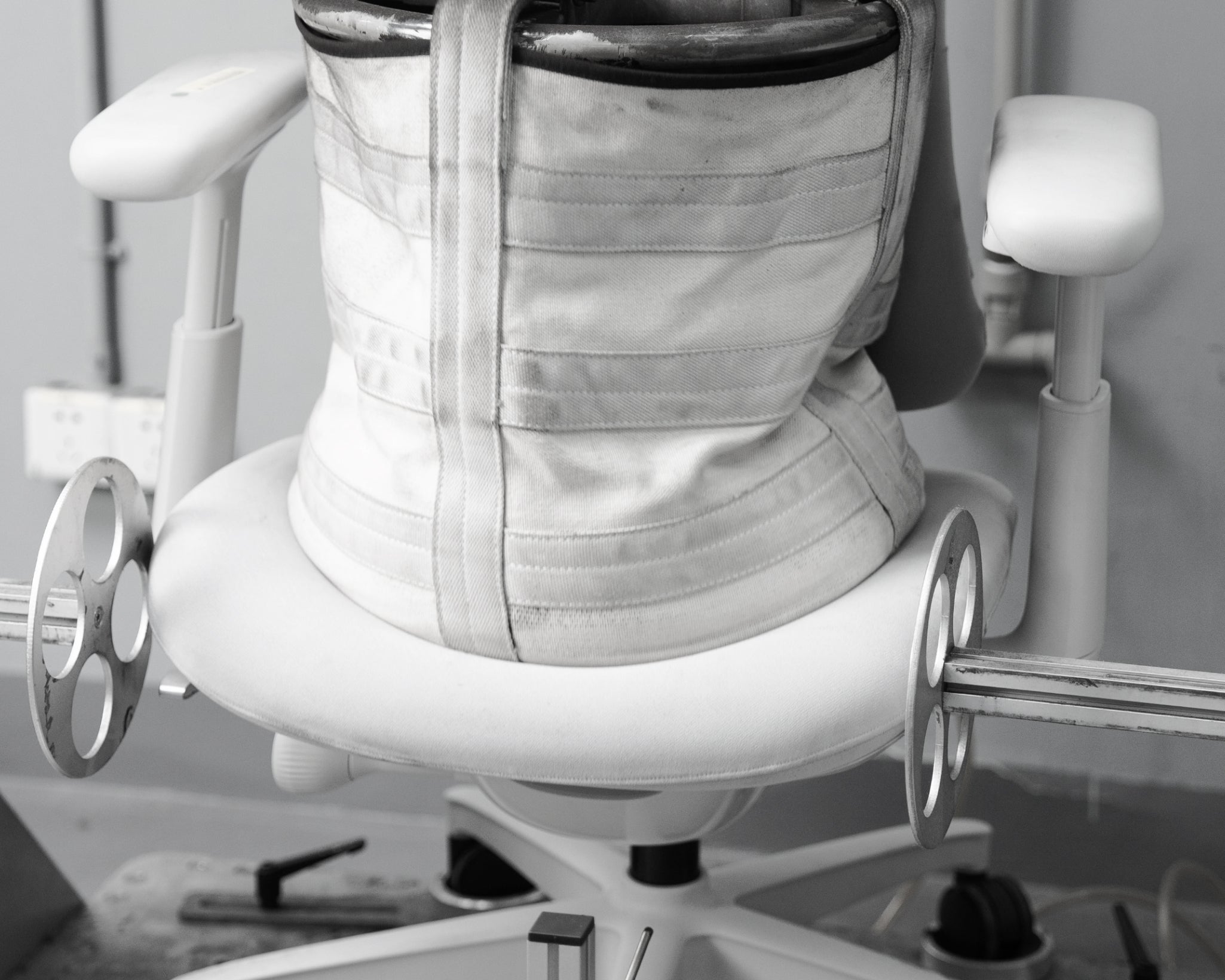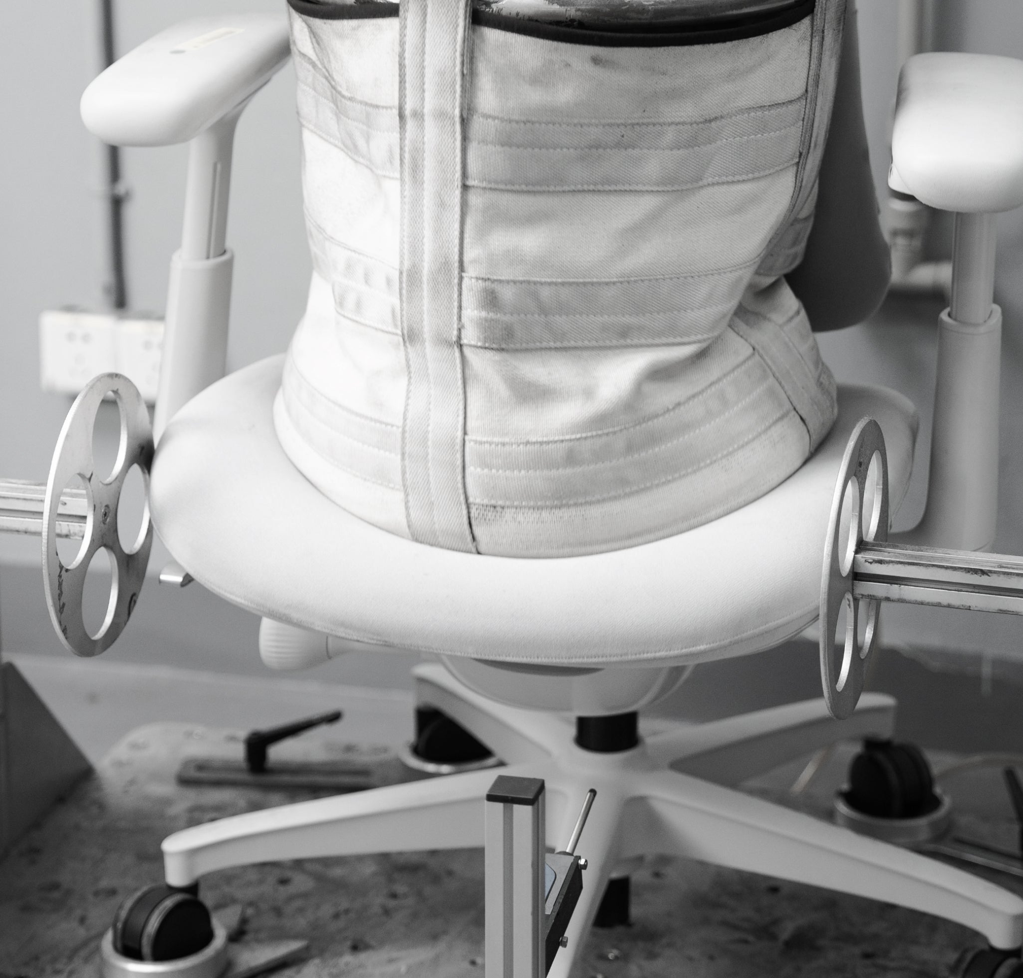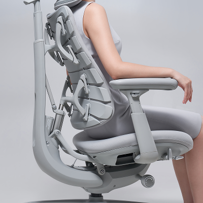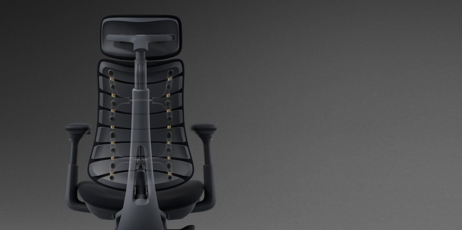 Lo schienale è dotato di 8 pannelli flessibili collegati da 14 punti di connessione doppia, che formano una superficie di supporto dinamica. Dotato di staffe sferiche a doppio strato e 16 punti di snodo, garantisce flessibilità e stabilità, per un allineamento spinale personalizzato con un supporto elastico.