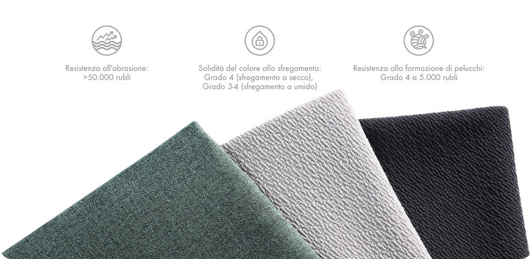 Realizzati con una trama sottile e strutturata per una delicata elasticità e una sensazione di morbidezza, questi tessuti si adattano delicatamente ai contorni della sedia, offrendo un supporto elastico che si adatta ai movimenti senza compromettere la morbidezza.