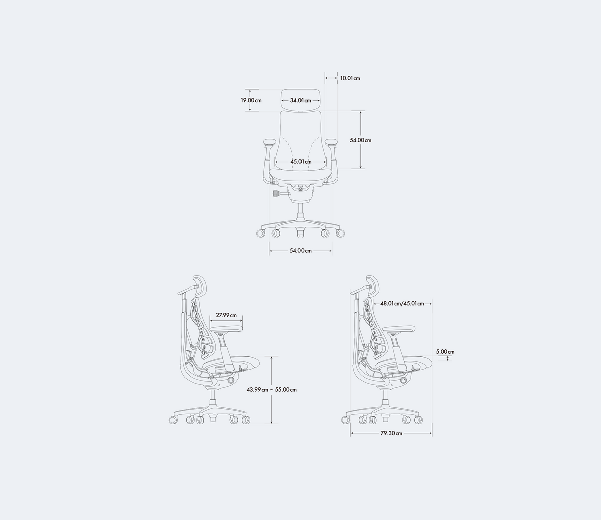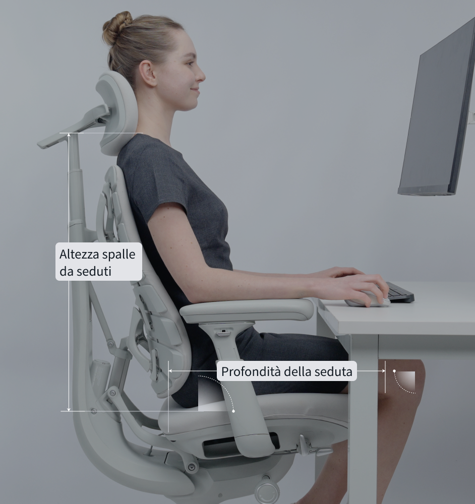 - Supporto dinamico: si regola istantaneamente mentre si muove, dal poggiatesta ai braccioli, per un comfort continuo e sincronizzato.