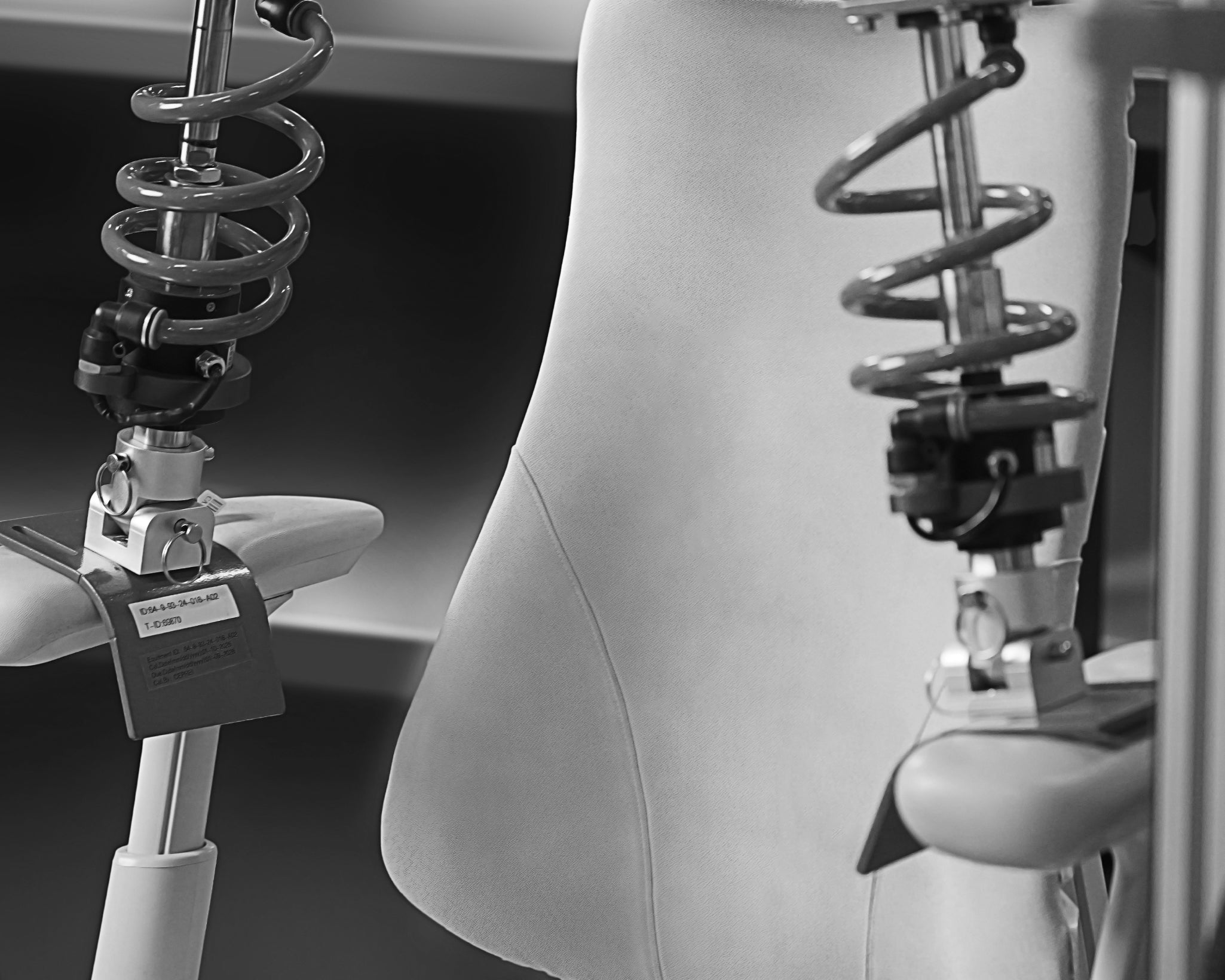 Personalizzato per ogni colonna vertebrale. I materiali flessibili Omni si adattano alle curve spinali, con punti di controllo e attuatori che garantiscono un supporto stabile e personalizzato.